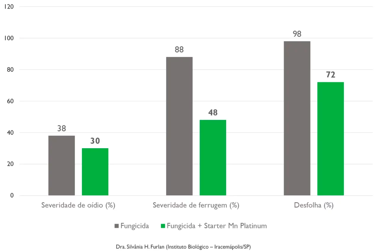 Oferece plantas mais eficientes e bem desenvolvidas As plantas dependem de uma adequada oferta de macro e micronutrientes para obter uma nutrição adequada. Infelizmente, muitos agricultores negligenciam a aplicação de micronutrientes, tanto através do solo como por meio de pulverizações foliares. Isso resulta na produção abaixo do potencial genético das culturas. Oferece vantagem operacional através da compatibilidade física Starter Mn é compatível com os principais defensivos do mercado e pode ser utilizado em vários momentos ao longo do ciclo sem restrições de mistura. Recomenda-se o parcelamento da dose de 2 L/ha, visando o fornecimento dos micronutrientes em momentos chaves para o desenvolvimento da planta. Fortalece a resistência natural das plantas Os micronutrientes desempenham um papel crucial na defesa das plantas, tornando-as mais capazes de resistir às doenças, afinal uma planta que não está em equilíbrio nutricional se torna mais suscetível a pragas e patógenos. Isso acontece porque os micronutrientes desempenham uma função fundamental na defesa das plantas.