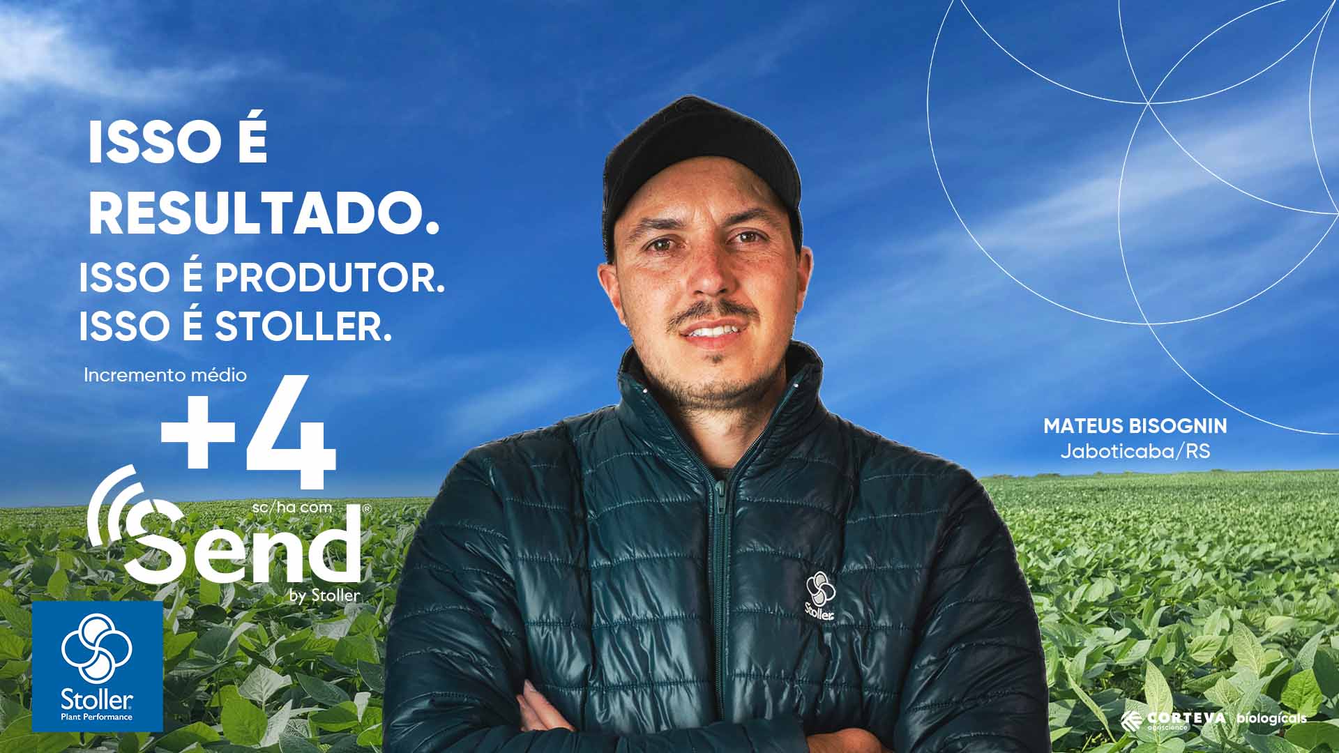 De geração em geração, Mateus Bisognin segue cultivando resultados. Agricultor e engenheiro agrônomo em Jaboticaba/RS e no campo, Mateus sempre confiou na Stoller: das sementes ao enchimento de grãos. Mateus usa Stoller desde que começou a atuar e relata que, mesmo com desafios climáticos, a propriedade conseguiu alcançar altas produtividades. Com o SEND, ele obteve +4 sc/ha na soja e hoje a solução faz parte do manejo.