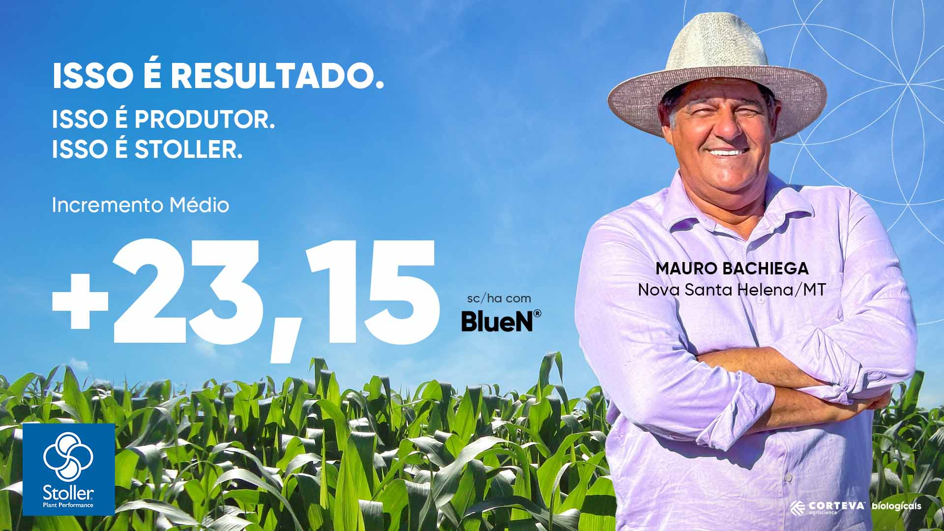 Segundo ele, a escolha pela Stoller se deu pela facilidade de manejo, pela performance dos produtos e pelo suporte técnico próximo. Um dos grandes destaques da última safra foi o uso do BlueN, que trouxe ganhos expressivos tanto na soja quanto no milho. Além do aumento de produtividade, Mauro destaca o impacto direto no peso de mil grãos (PMG). Na soja, o PMG saltou de 180 para até 212 gramas em algumas variedades. No milho, o ganho foi ainda mais expressivo, com o PMG chegando a 370 gramas.